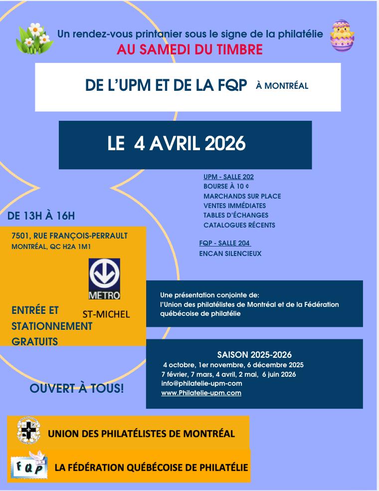 À votre agenda! Samedi UPM/FQP 4 avril 2026